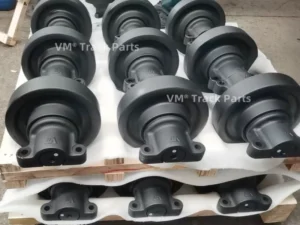 Track rollers, also known as bottom rollers or support rollers, are located on the lower part of the undercarriage frame, directly contacting the ground through the tracks. They are the primary load-bearing components, supporting the entire weight of the crane as it moves.