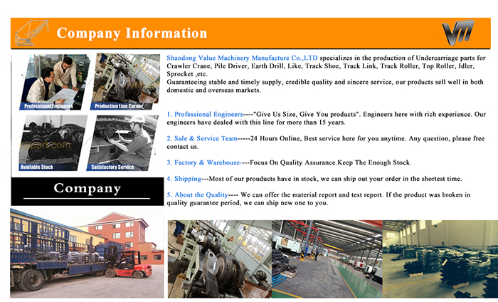 We are professional manufacturer for crawler crane undercarriage parts. Like Hitachi; Sumitomo; Hitachi Sumitomo; Samsung Hitachi; Kobelco; IHI; Nippon Sharyo; Manitowoc; Link-Belt; Liebherr; American; Terex-Demag; Terex American; SANY; FUWA; Zoomlion; YUTONG; LIMA; Kinki Ishiko; Ruston-Bucyrus; NCK.